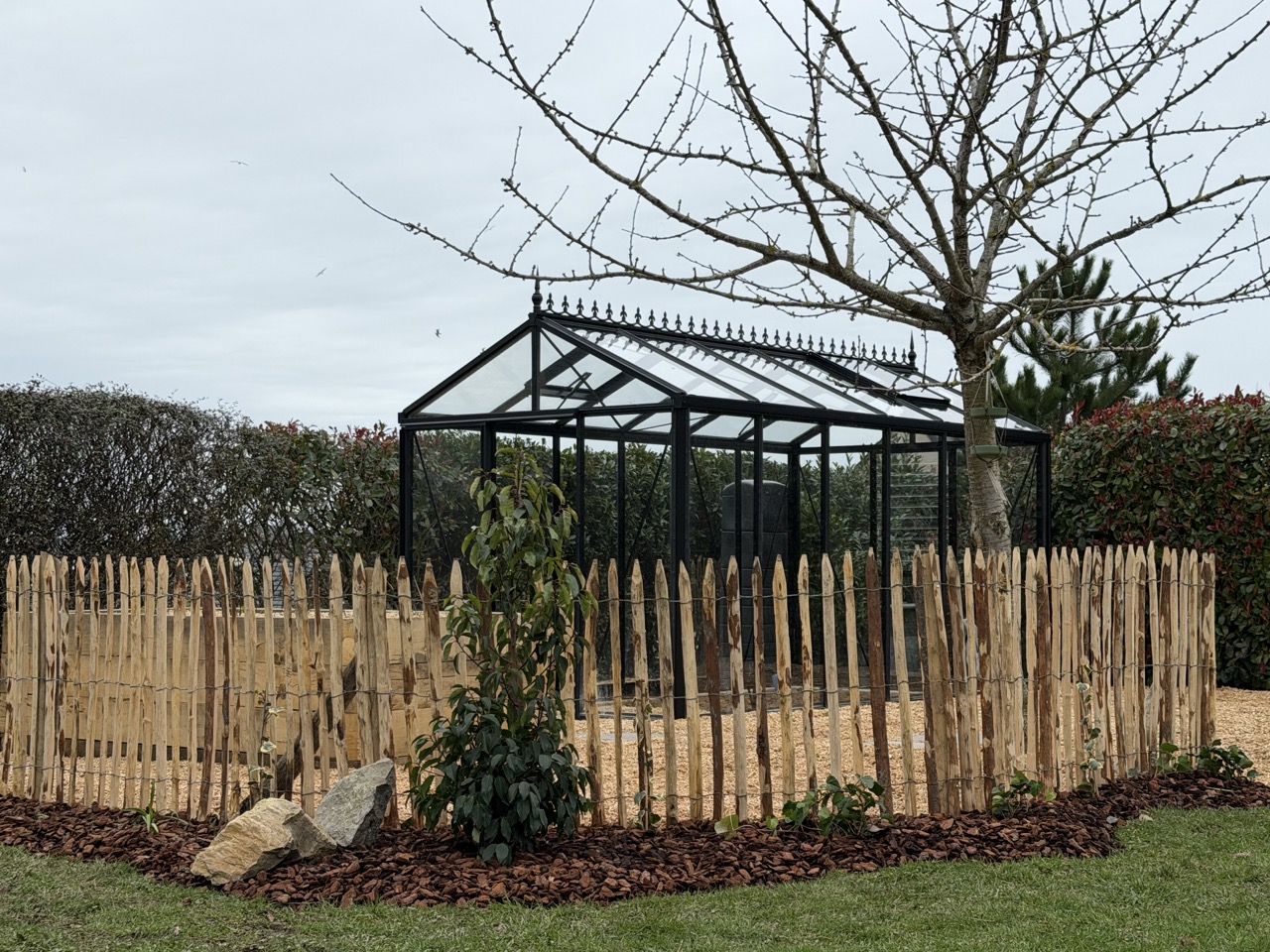 - Pose d'une clôture en bois pour délimiter et cadrer l'espace